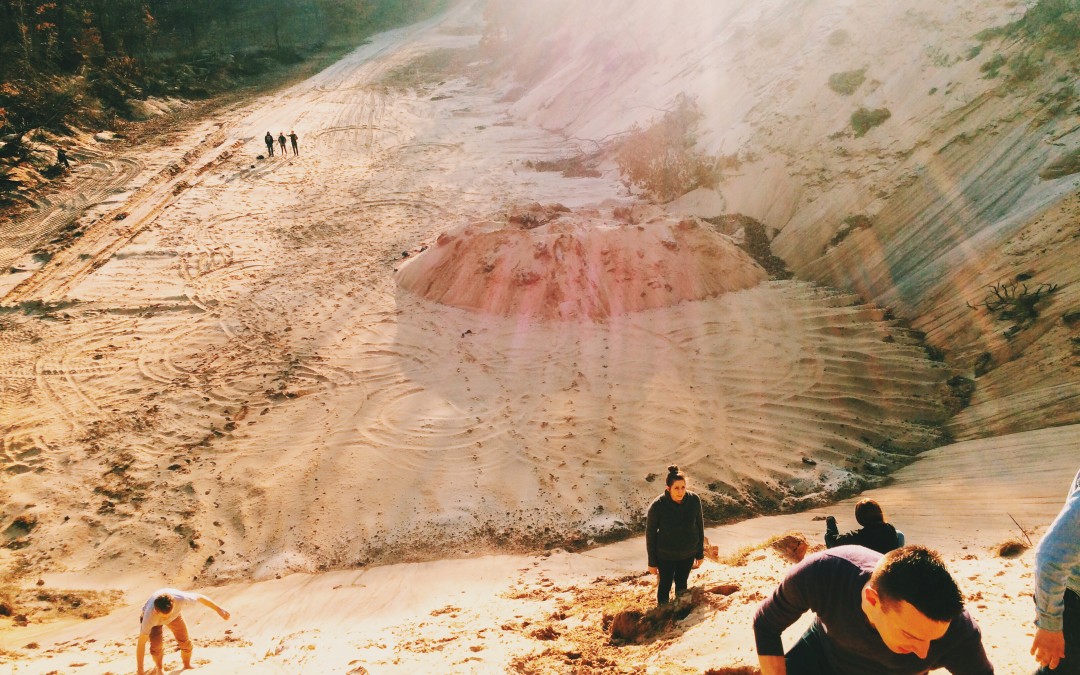 Because the majority of my friends from college came from outside West Michigan, Easter weekend was always spent at the nearby Gackowski family property. This little oasis is complete with lake, walking trails, front porch, yard for Frisbee, hill for bonfire, and home-cooked food on every horizontal surface at any hour of the day. The Mrs. G chocolate balls are particularly noteworthy: Giradelli chocolate filled with some sort of magical Oreo and cream cheese concoction we dream about all year. The Gackowski home is also located walking distance from a giant sandpit, the purpose of which I have never fully understood, but which we have climbed and played in ever since we first saw it as college freshman. We’ve wondered when the year will come that we don’t all gladly embrace our inner child in exchange for spending the rest of the day shaking sand out of our shoes. This year most of us are twenty-five years young.