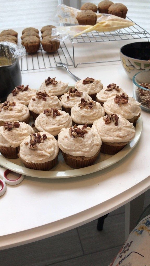 But toasting pecans and mashing over-ripe bananas and browning butter for frosting were tasks that took my hands off of the throat of my own life. I gave up control, handing it back over to God while my hands were busy mixing the custard and sifting cinnamon into a big bowl of pastry flour. And He seemed to hold it just fine for me while I baked, losing my life to gain it back, with far less tension in my shoulders.
